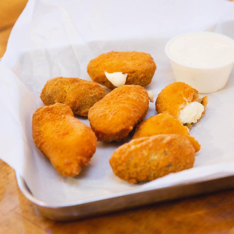 Six deep-fried jalapeños poppers stuffed with cream cheese served with ranch.