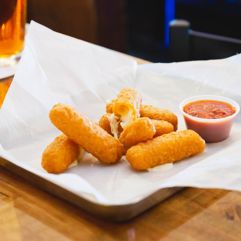 Six mozzarella sticks, deep-fried to a golden brown, served with hot marinara sauce.
